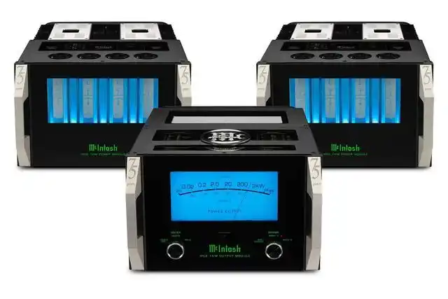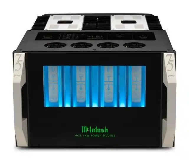 为了庆祝品牌成立75周年,美国McIntosh推出一系列的75周年限量产品,其中包括MC2.1KW旗舰单声道后级,每声道可输出2,000W,每个国家仅有75对,器材上将拥有75周年的纪念标志,极具典藏价值。MC2.1KW采用三件式分体式设计,包括一台输出中心(Output Module),搭载McIntosh知名的输出变压器,两台独立之后级放大线路(Power Modules),各负责1,000W的输出,整套可在阻抗2欧姆、4欧姆或8欧姆之下输出完整高质量之2,000W推力。MC2.1KW采用McIntosh经典的外观设计,前方有大型蓝眼睛指针及抛光不锈钢镜面、全铝合金把手等。