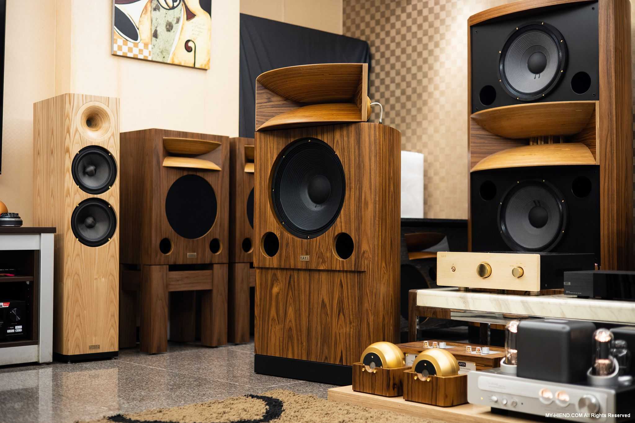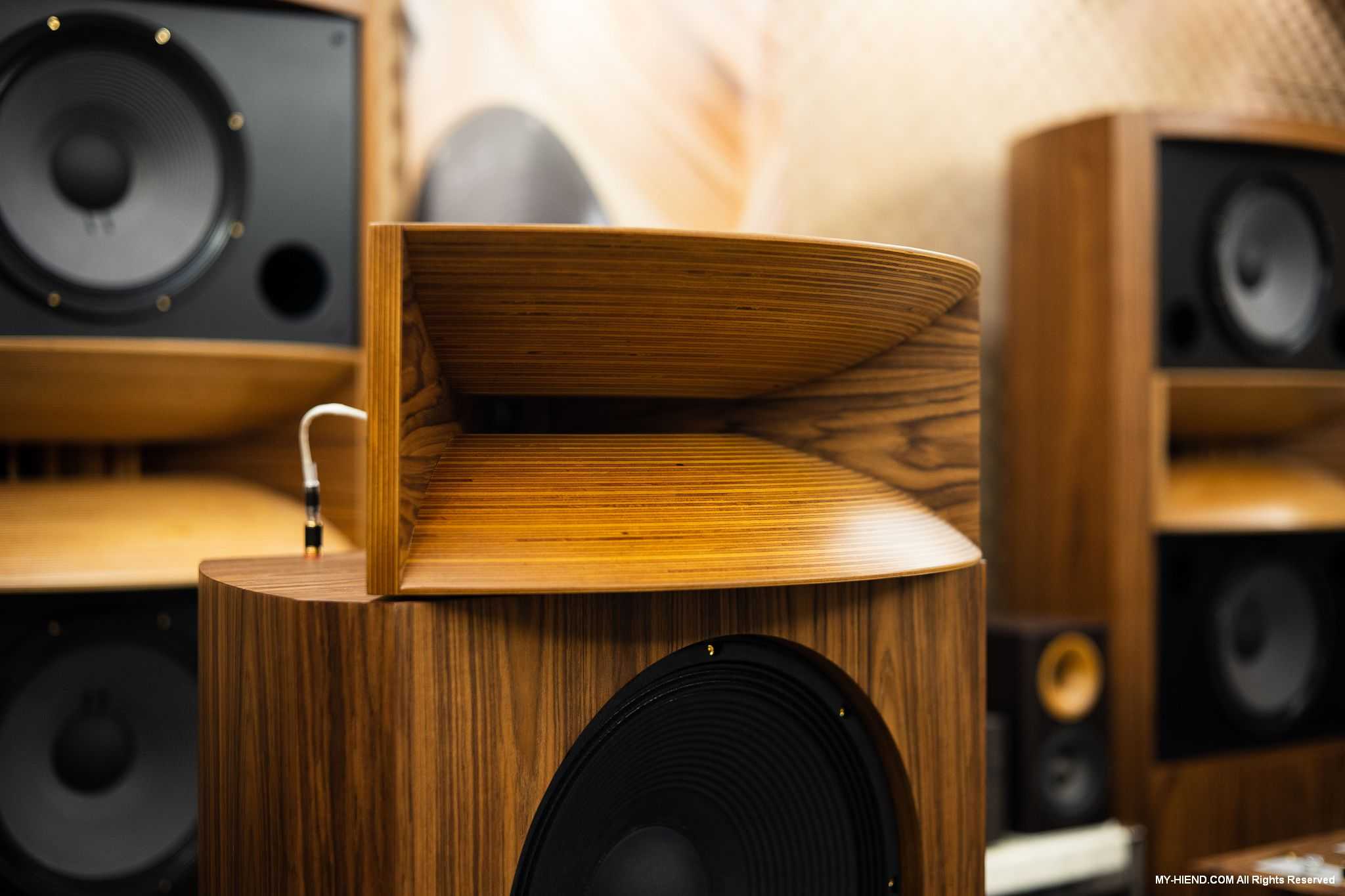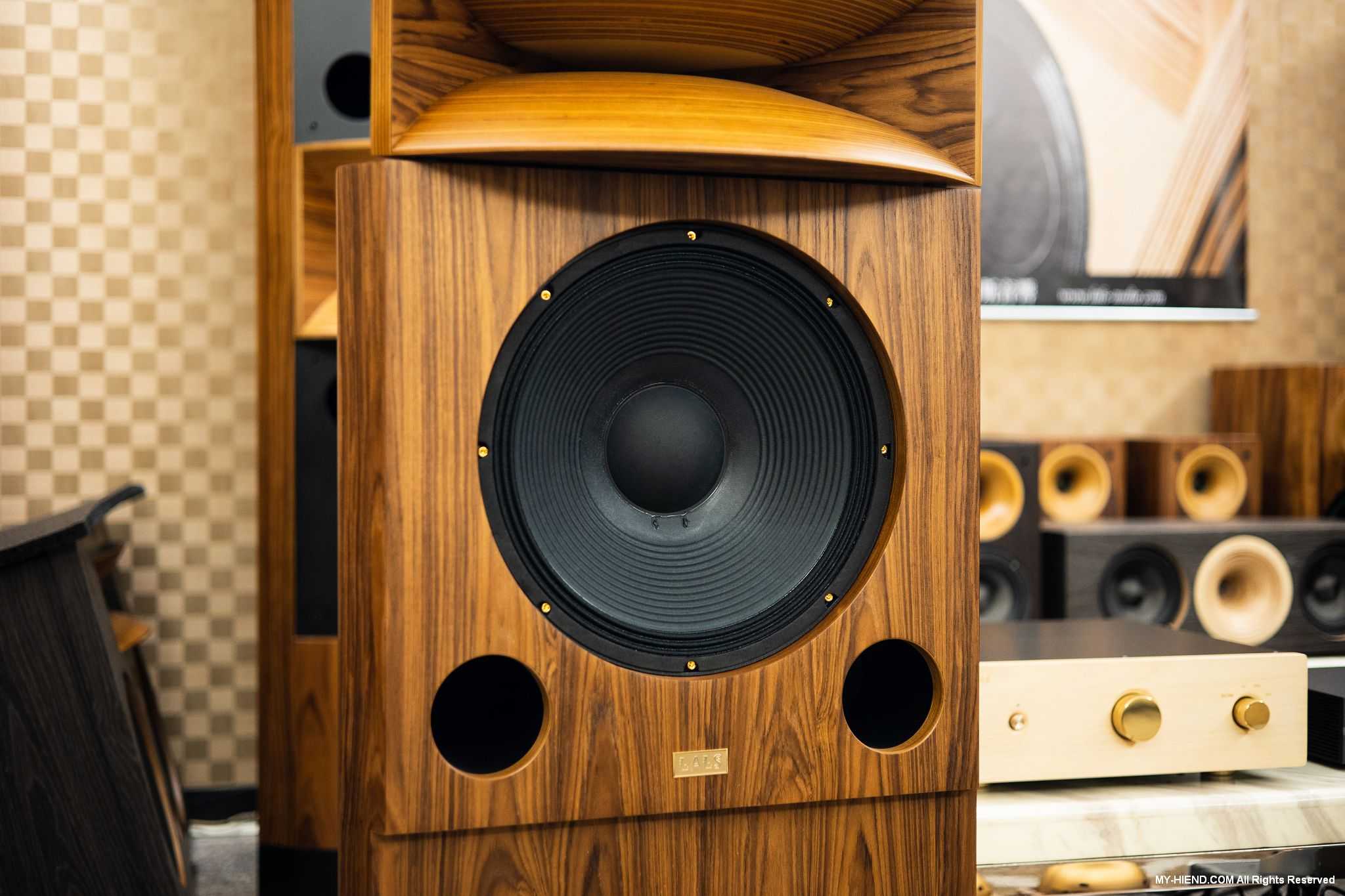 音响展结束后,我们马上也到LALS总部的试听中心更为深入与聆听这对全新喇叭,在LALS这边这对的Precision 15 II与圆山展的版本是不同的,这里是分音器内建的版本,分频点在800Hz,较适合大部分用家使用,而音响展展出分音器独立分离的版本,就适合想要使用电子分音的用家,并且还会针对号角部分进行对应调整,内建分音器就简单多了,号角虽然位置可调,但绝大部份情况之下是无需大幅度调整的。外观部分有柚木皮、胡桃木皮、紫檀木皮、白栓木皮、黑檀木皮多种可选,当天试听的是柚木皮版本。