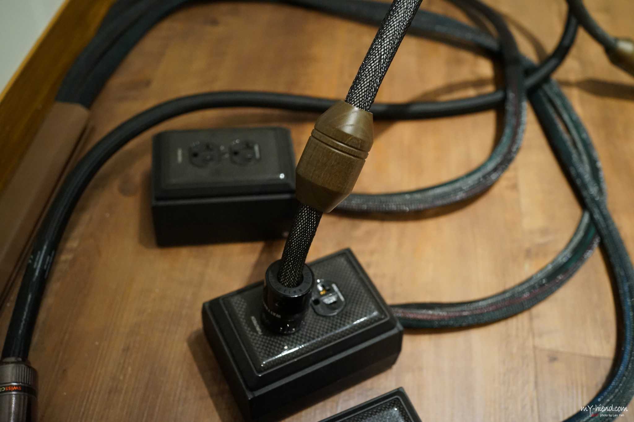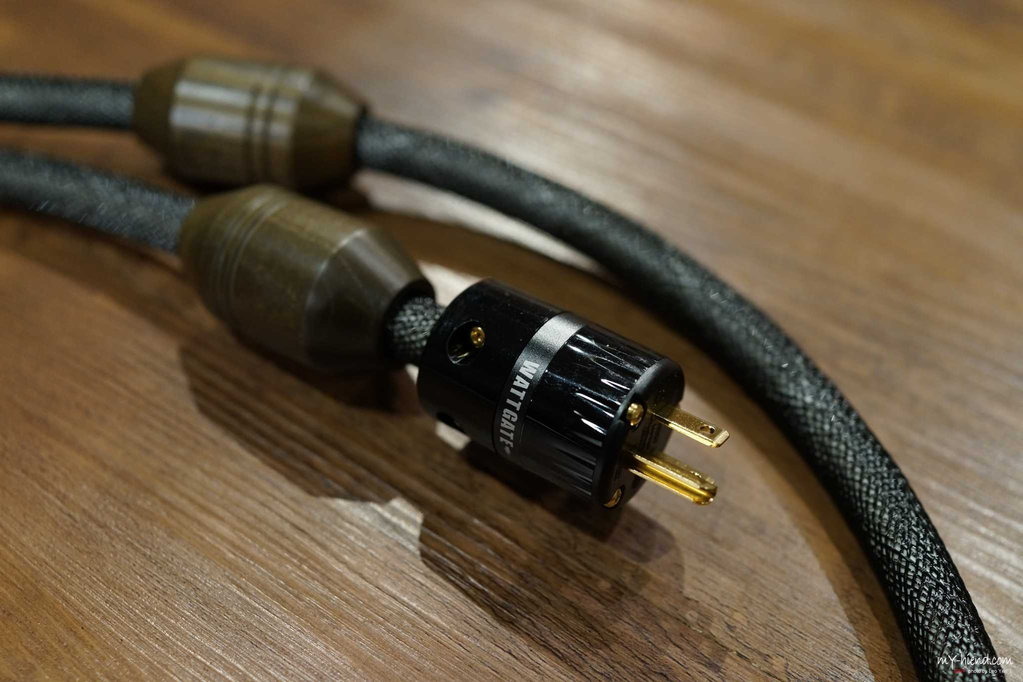 Power Reference One电源线完全以手工打造,以固定方向,多股单芯5N的纯铜导体缴绕而成,并用上了三层隔离,包括两层高密度的铜编织网与一层铝箔,再加入铁弗龙为绝缘介质。为了处理震动问题,线材填充了纤维与纸以隔离导体。电源接头方面,经过多方面测试后,决定使用IEGO与Wattgate的制品。线身有一大两小的原木避震环,其里面有填充压电矿物以消除负离子。