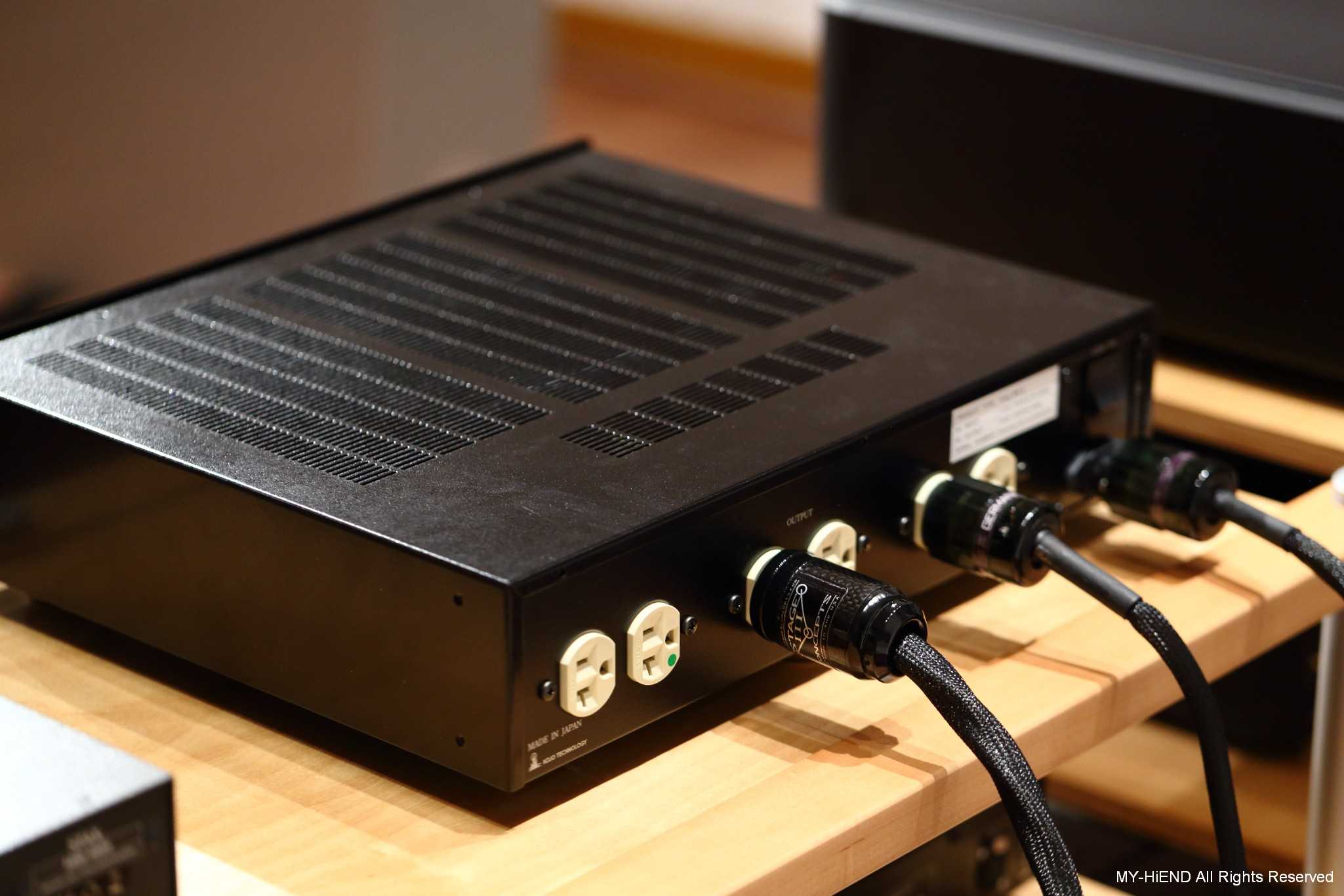 本次试听的Aray MKII电源再生器是其专为High End音响所推出的主力产品,也是光城精工有名的DENKEN DA-7电源再生器最新一代,以干净、透明、流畅、动态、能量等声音特性受到市场广大欢迎,Aray MKII在日本连续获得许多奖项肯定。光城精工将电源再生器称之为「魔法の箱」,Aray MKII透过将市电之AC交流电转换为DC直流电后再转换为AC交流电输出,以再生最纯净之电源,有如将水蒸馏以滤除杂质之过程一般。 Aray MKII使用的AC/DC/AC转换核心技术为自家研发的PWM(Pulse Width Modulation)脉冲宽度调变线路,具有高效率低发热之特性,这也是为什么Aray MKII具有1000VA的输出能力,但体积与重量相较于使用大型环型变压器的产品来说,仍可维持相对较小较轻的原因。